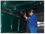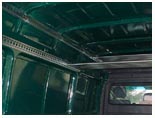 Anbauten von federbelasteten Kleidertransportstangen und -schienen in einem DB-Sprinter.